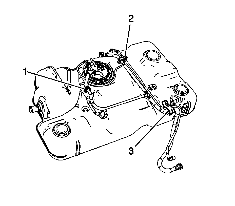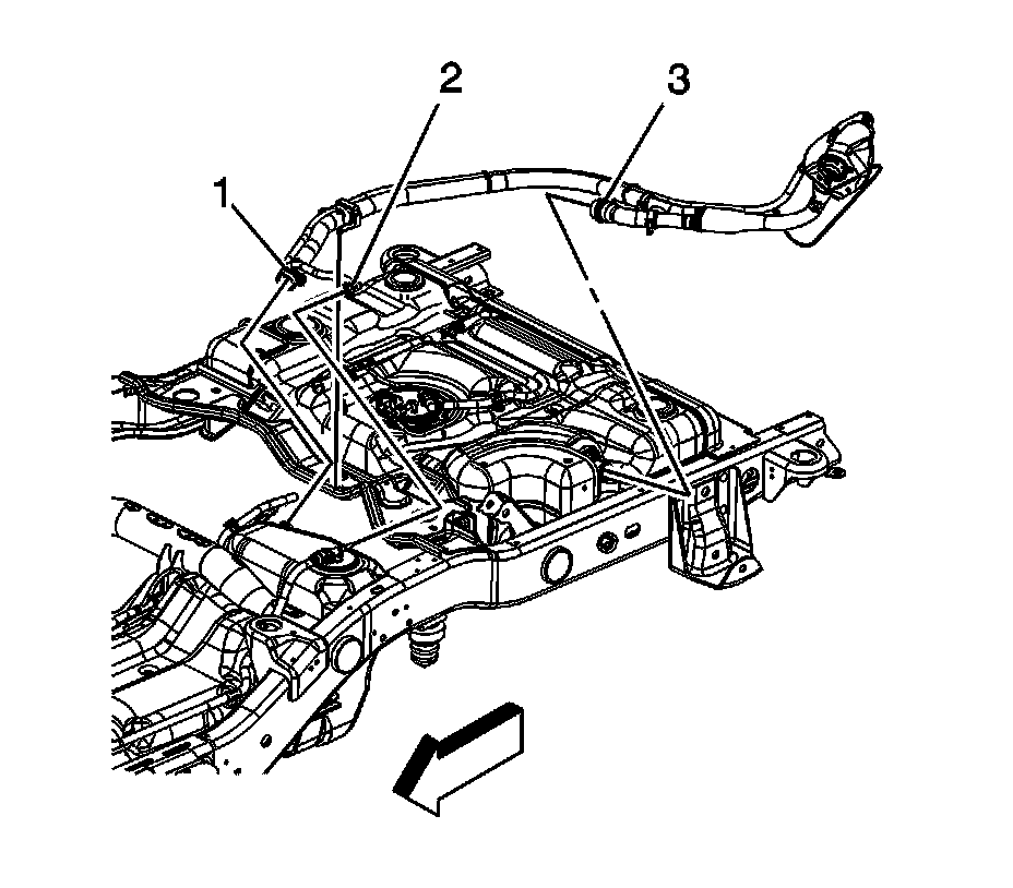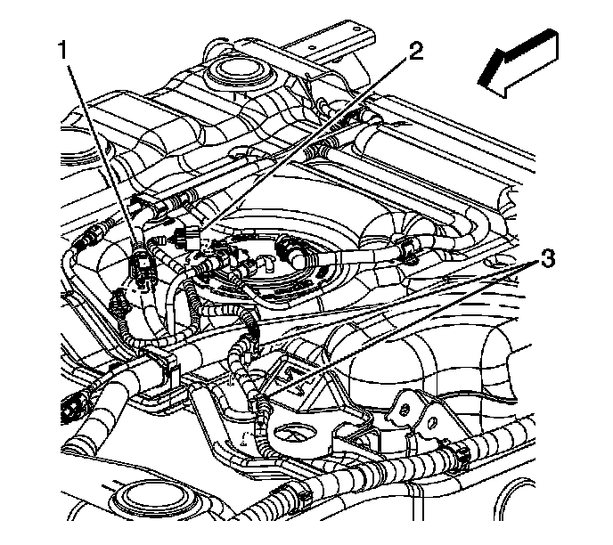 11. Install the EVAP lines to the clip (3).