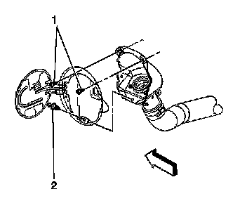 36. Install the fuel tank filler housing to body TORX(R) screws (1) and retainer (2).