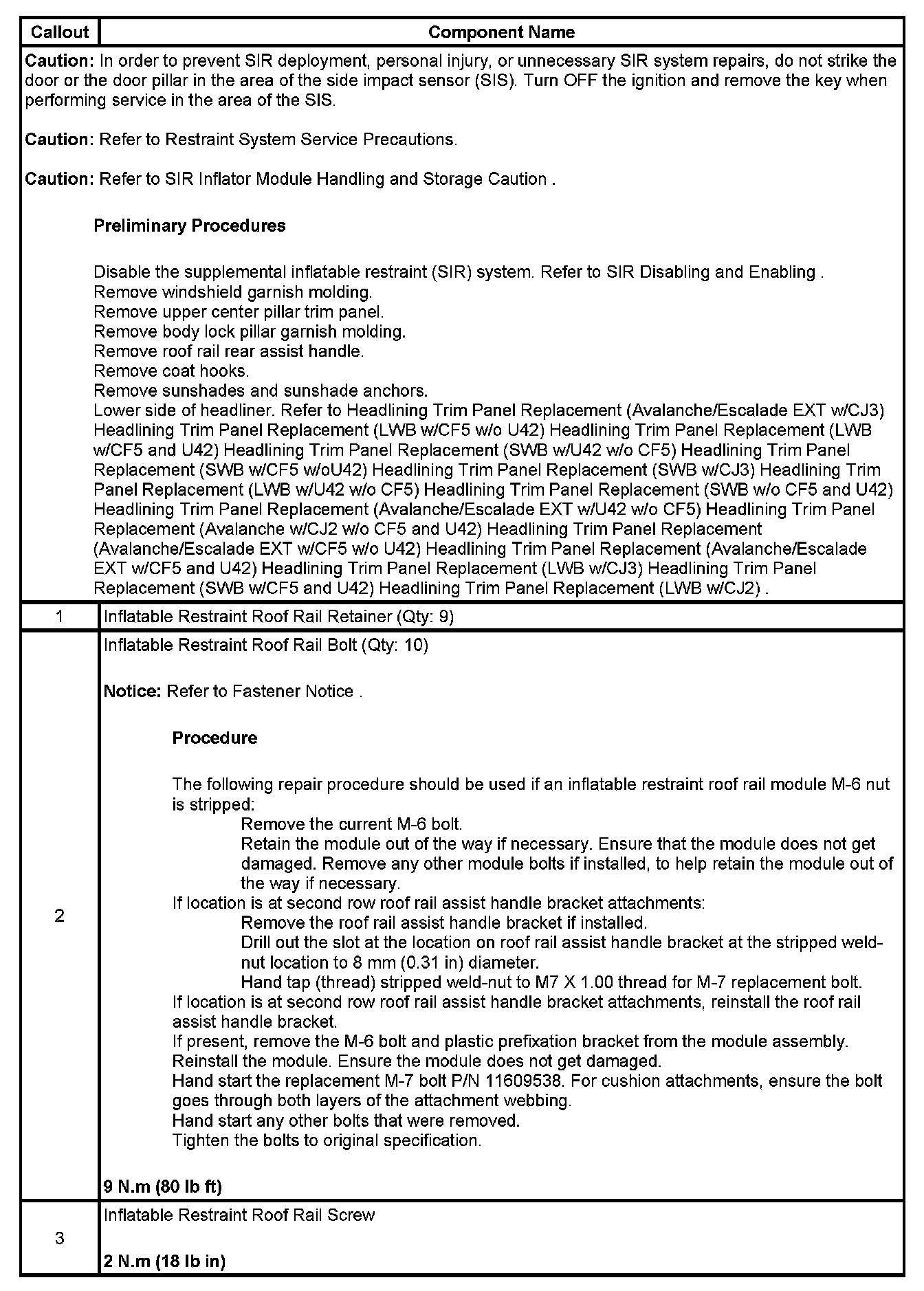 Roof Side Rail Inflatable Restraint Module Replacement (Rear Left, Avalanche/Escalade EXT)