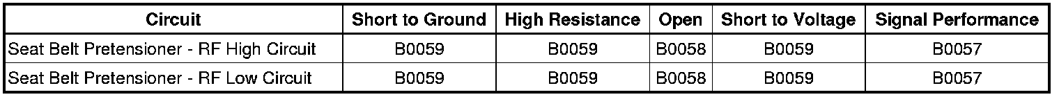 * A short to ground or a short to voltage in the seat belt pretensioner - RF high or low circuits