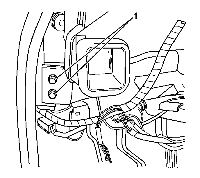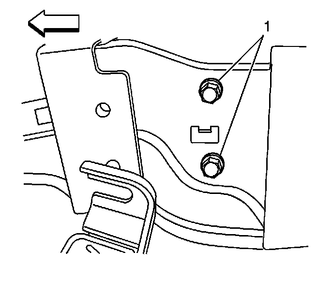 17. Partially install the 2 bolts (1) retaining the I/P carrier to the brake pedal/steering column support bracket.
