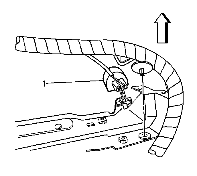9. Located near the OnStar(R) module, remove the I/P harness retainer (1) from the I/P carrier.