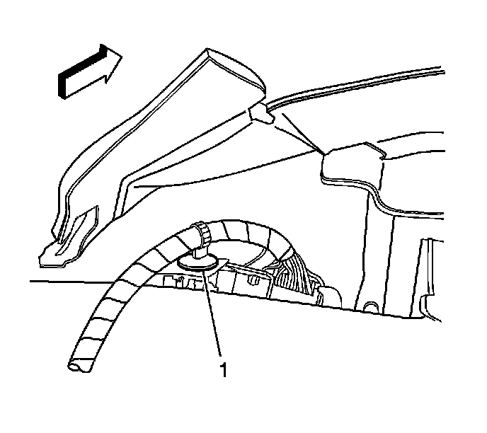 11. Located near the OnStar(R) module, install the I/P harness retainer (1) to the I/P carrier.