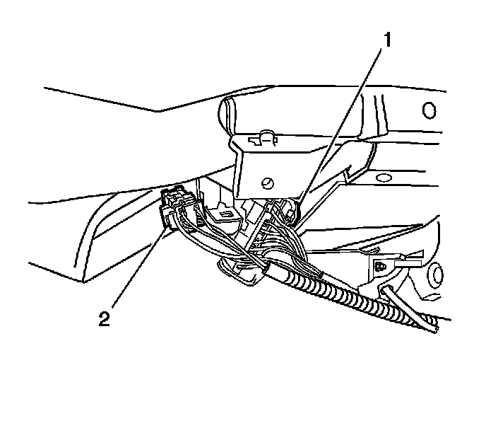 16. Remove the steering column (1) and SIR connector (2) from the I/P carrier.