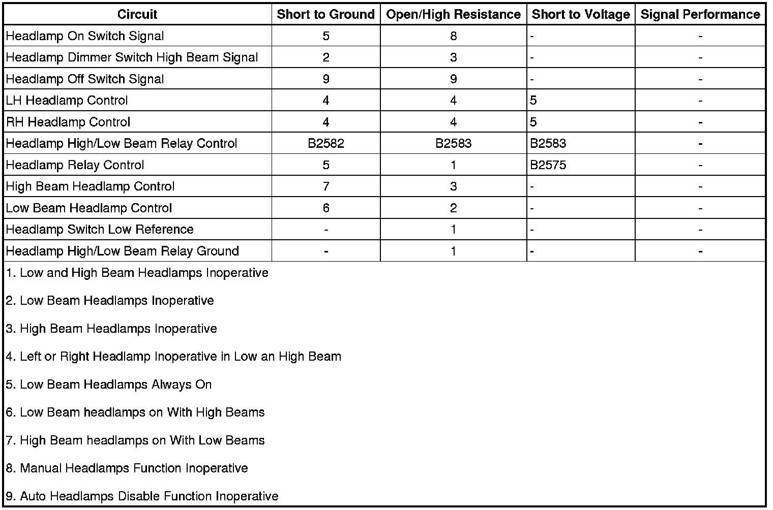 7. If all the circuits test normal replace the affected headlamp bulb.