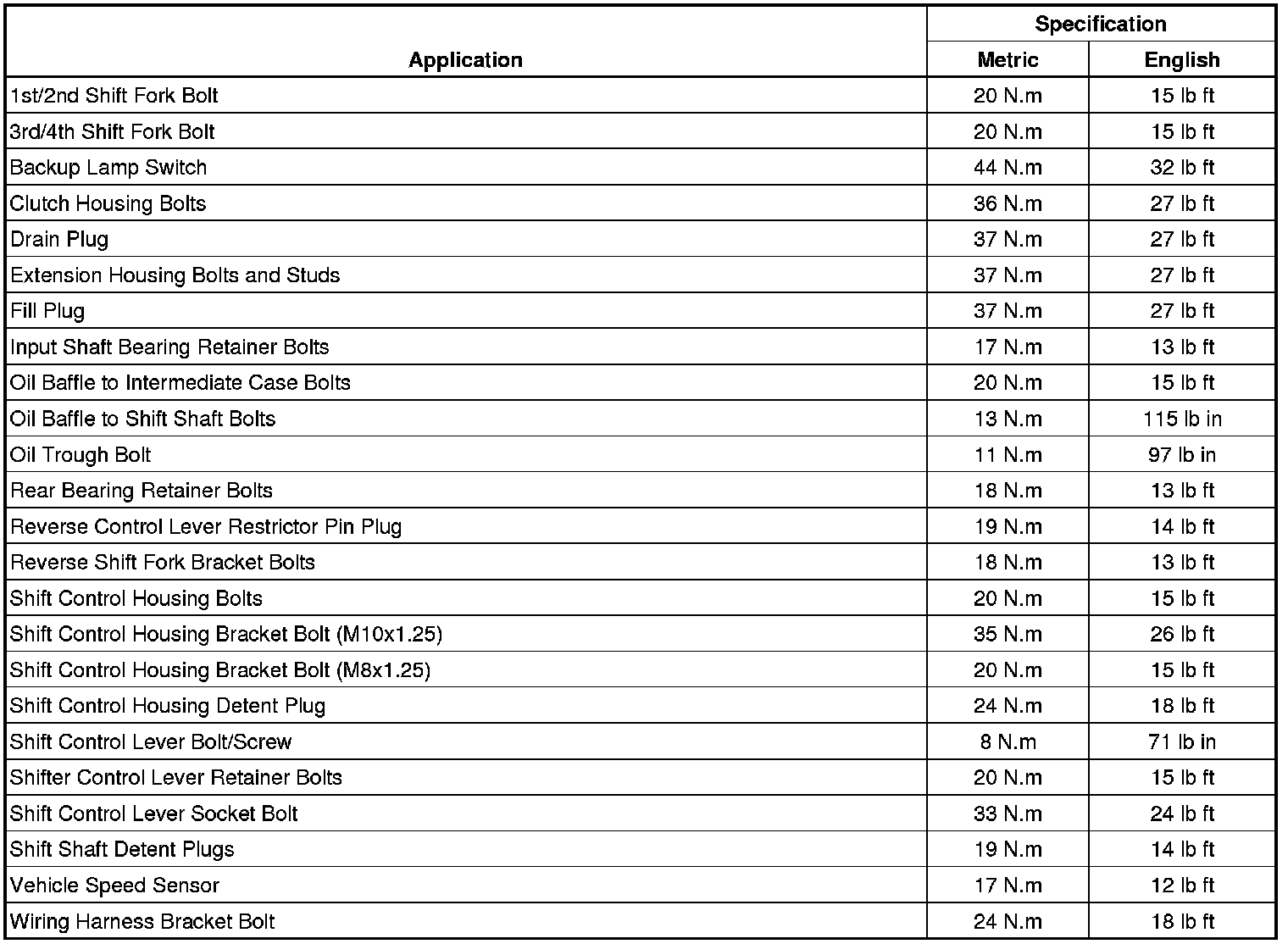 Fastener Tightening Specifications