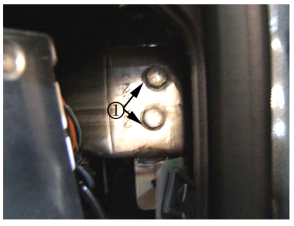 Remove the right lower carrier bolt (1).