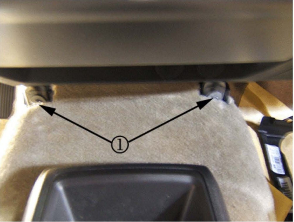 Remove the two center lower carrier bolts (1).