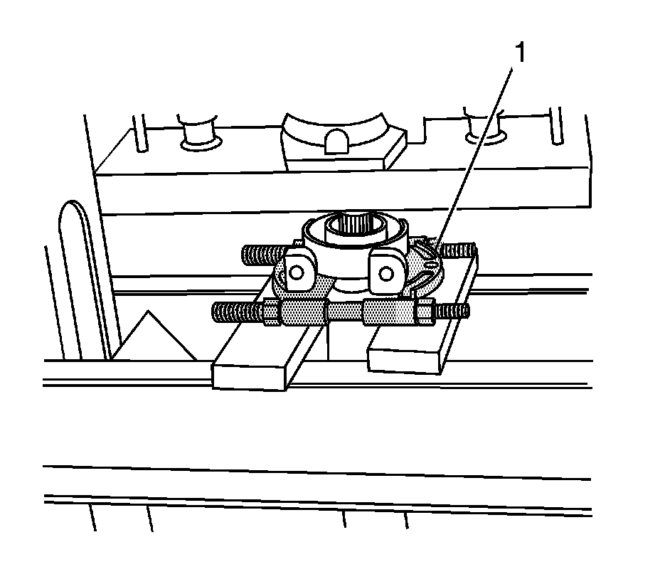 9. Install the J 44749 (1) to the propeller shaft.