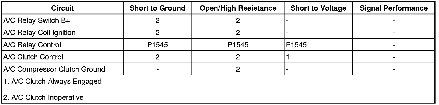 * A short to ground on the A/C compressor clutch relay control circuit.