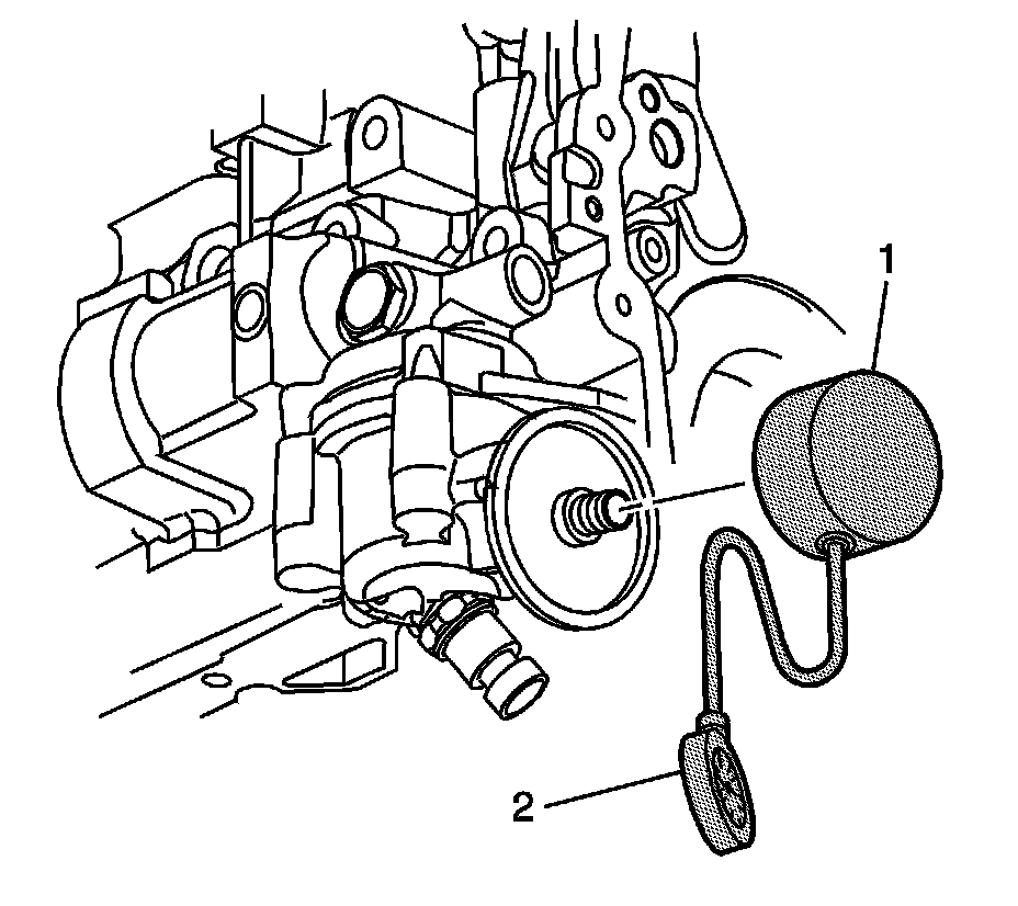 6. Remove the oil filter and install the J 42907 (1).