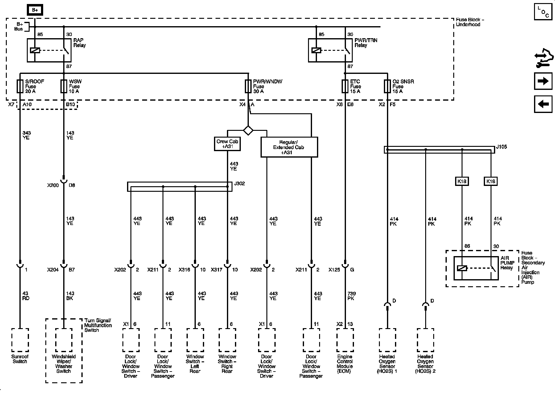 ETC, O2 SNSR, PWR/WNDW, S/ROOF, and WSW Fuses