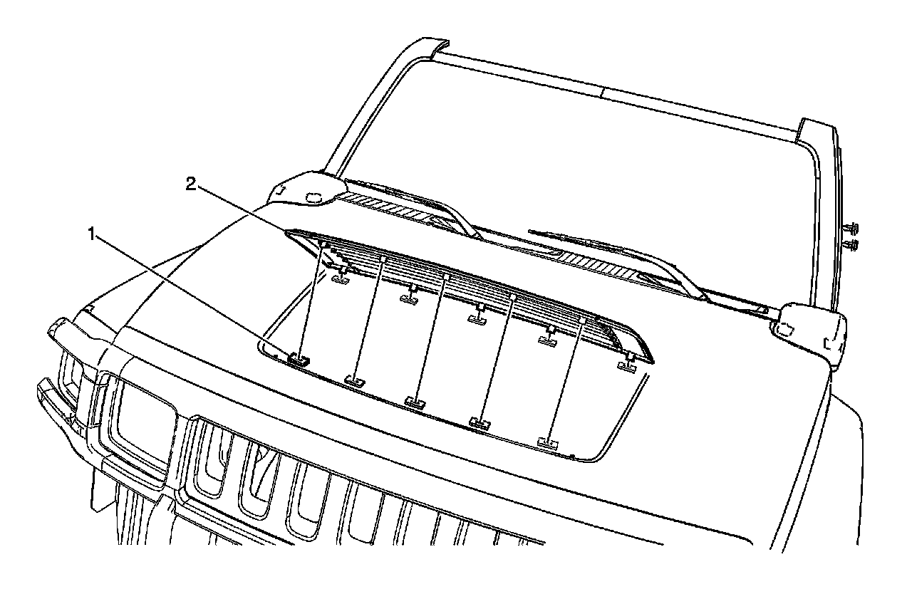 1. Remove the hood air grille. Refer to Hood Air Grille Replacement (H3) or Hood Air Grille Replacement (H3T) in SI.