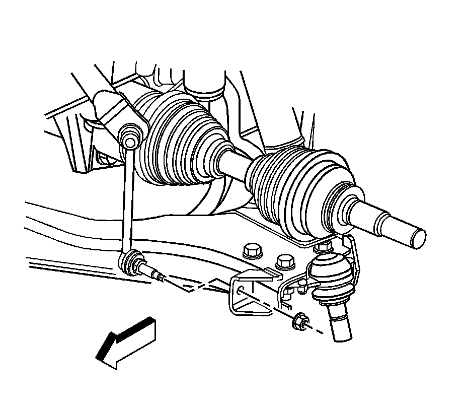 5. Install the swaybar link to the lower control arm. Refer to Stabilizer Shaft Link Replacement (ZQ8, Z85) (Stabilizer Shaft Link Replacement (ZQ8, Z85))Stabilizer Shaft Link Replacement (Z71) (Stabilizer Shaft Link Replacement (Z71)) .
