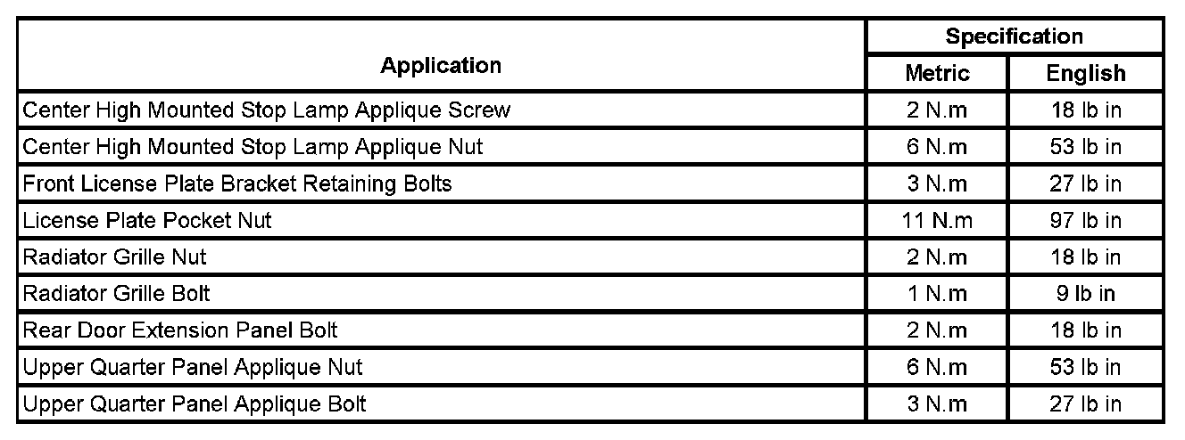 Exterior Moulding / Trim: Specifications