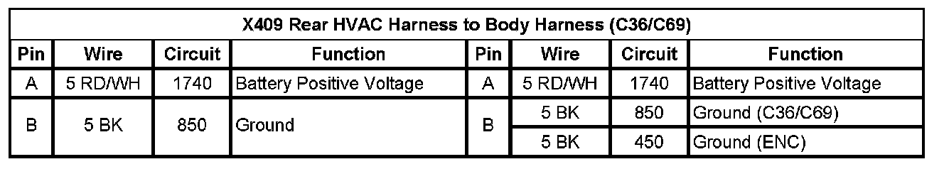 X409 Rear HVAC Harness To Body Harness (C36/C69) Pin A To B: