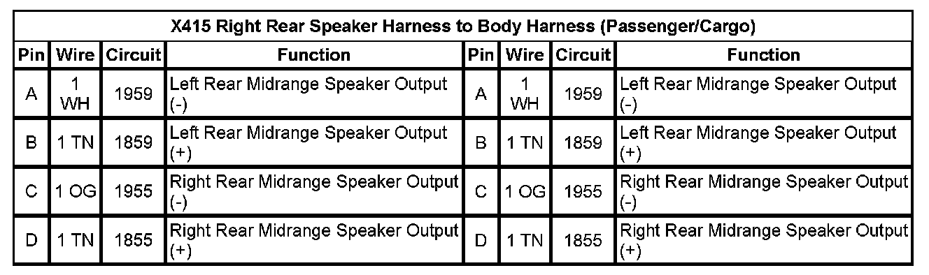 X415 Right Rear Speaker Harness To Body Harness (passensger/Cargo) Pin A To D: