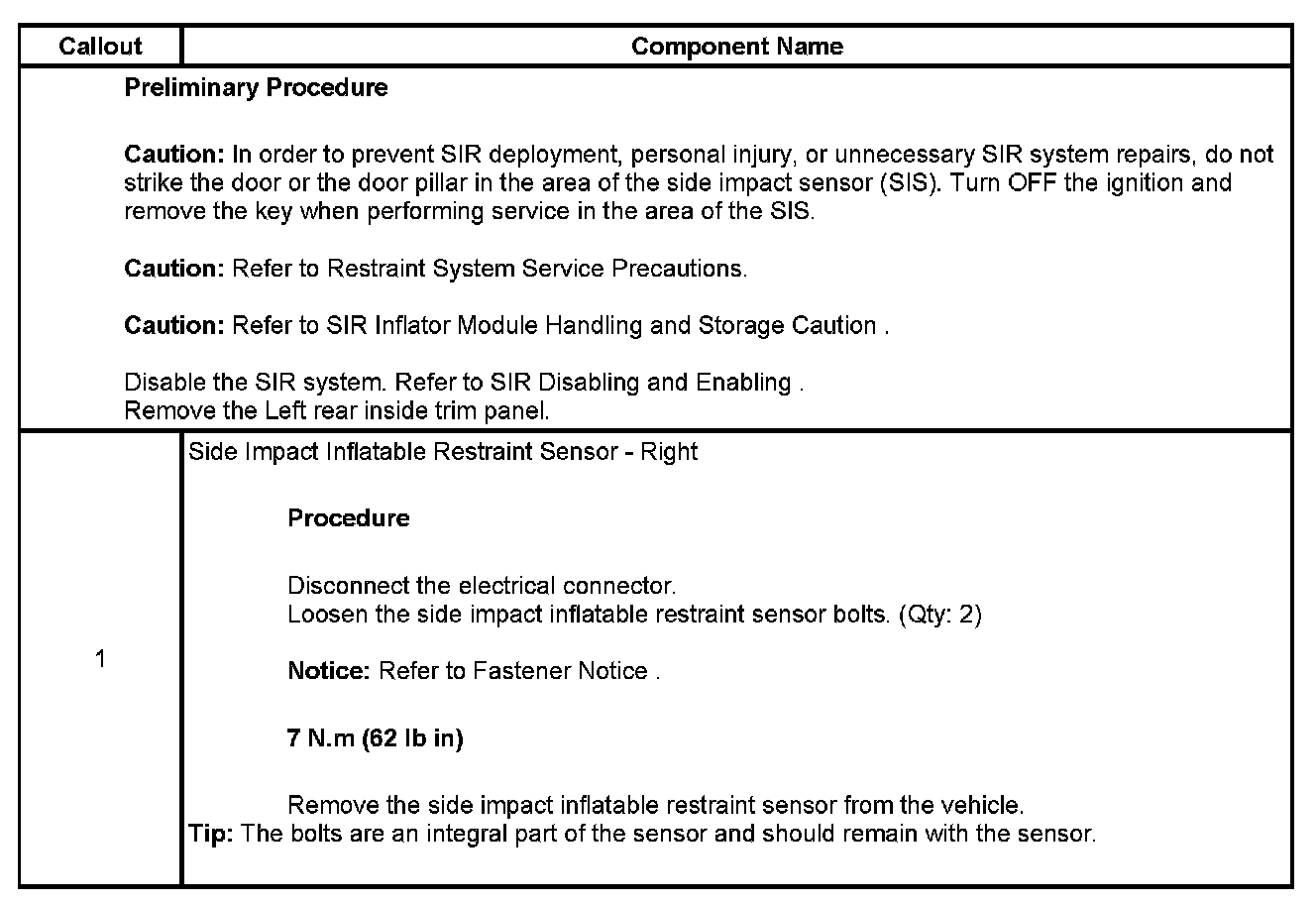 Inflatable Restraint Side Impact Sensor Replacement - Left Side Rear