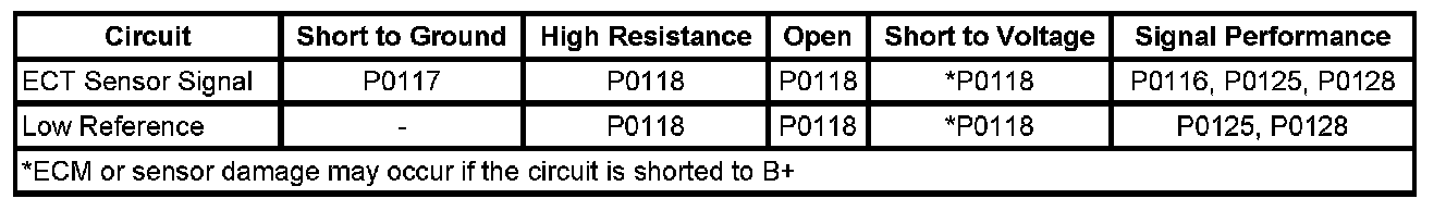 - Engine Coolant Temperature (ECT) Sensor Circuit Low Voltage