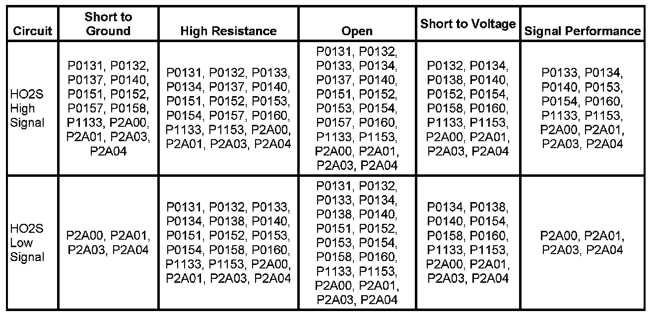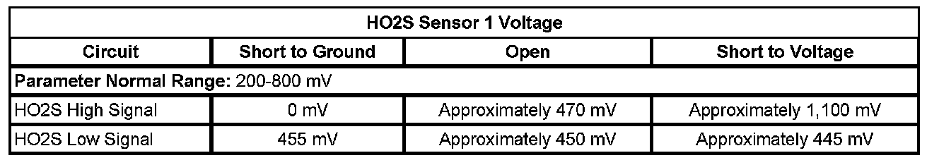- HO2S Circuit Low Voltage Bank 1 Sensor 1