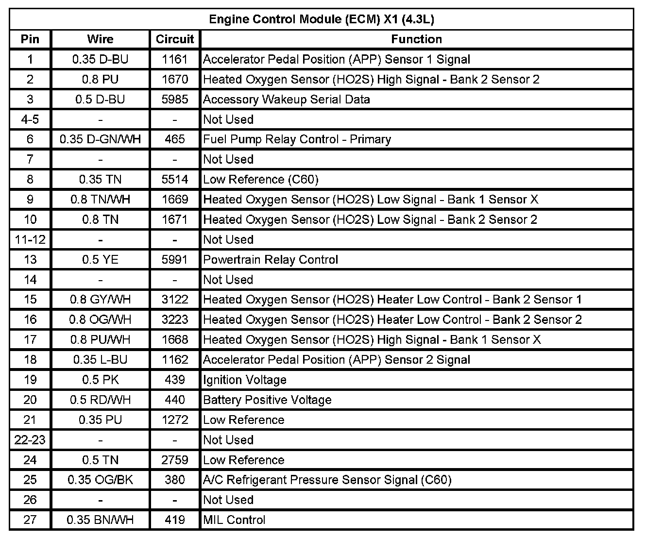 Engine Control Module (ECM) X1 (4.3L) (Pin 1 To 27):