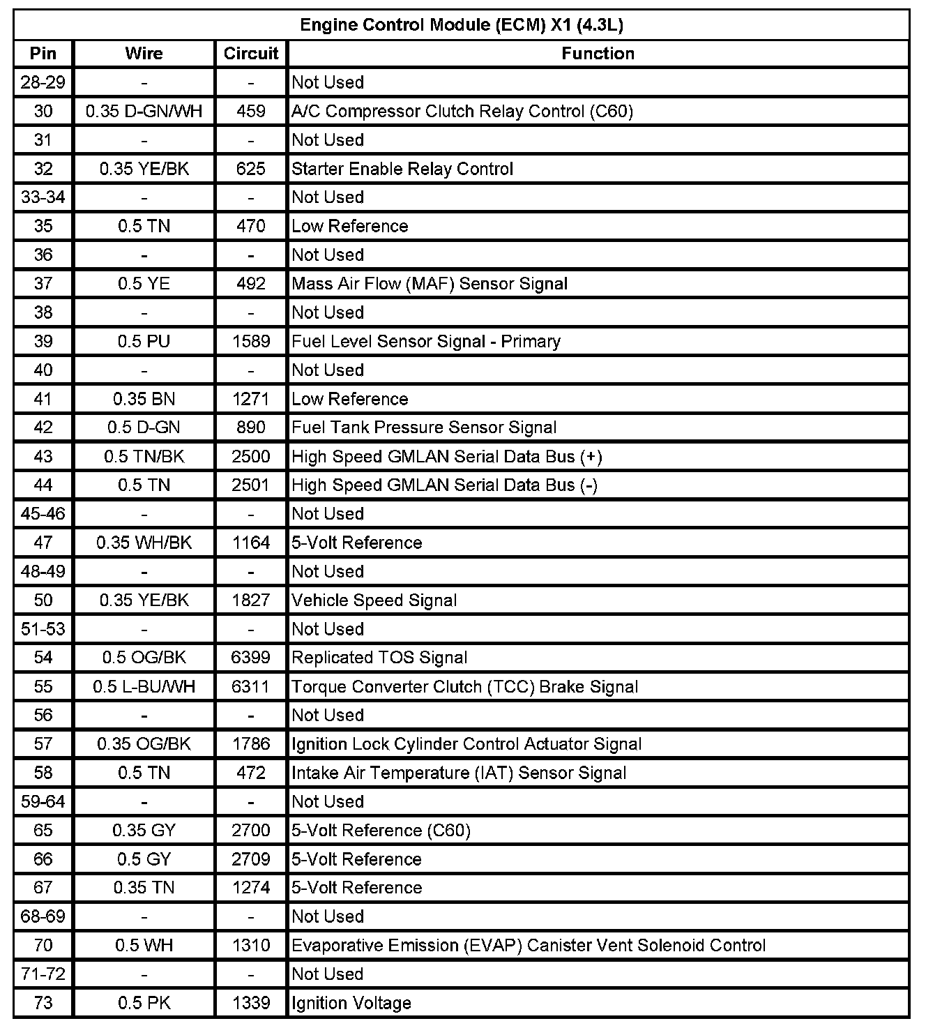 Engine Control Module (ECM) X1 (4.3L) (Pin 28 To 73):