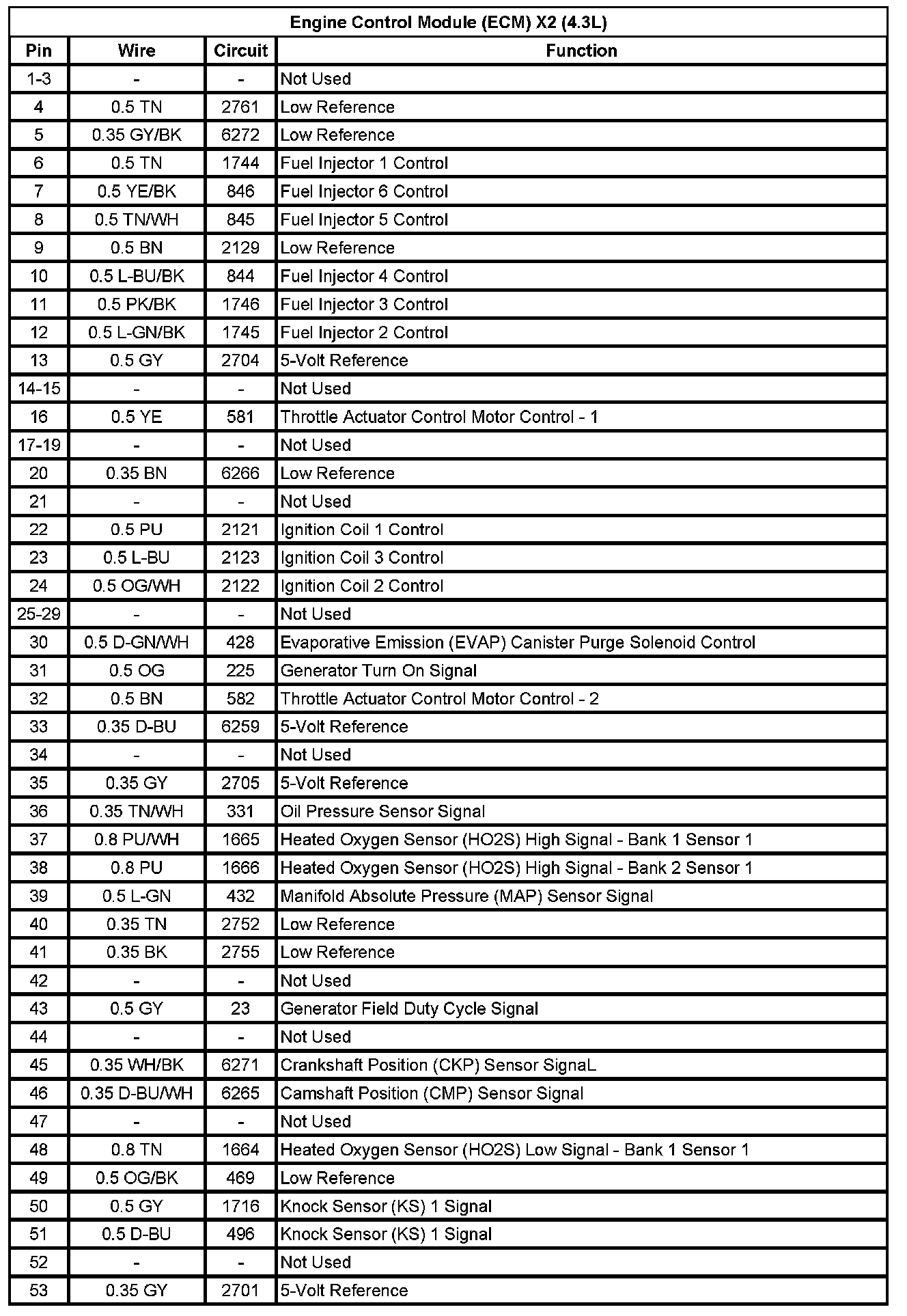 Engine Control Module (ECM) X2 (4.3L) (Pin 1 To 53):