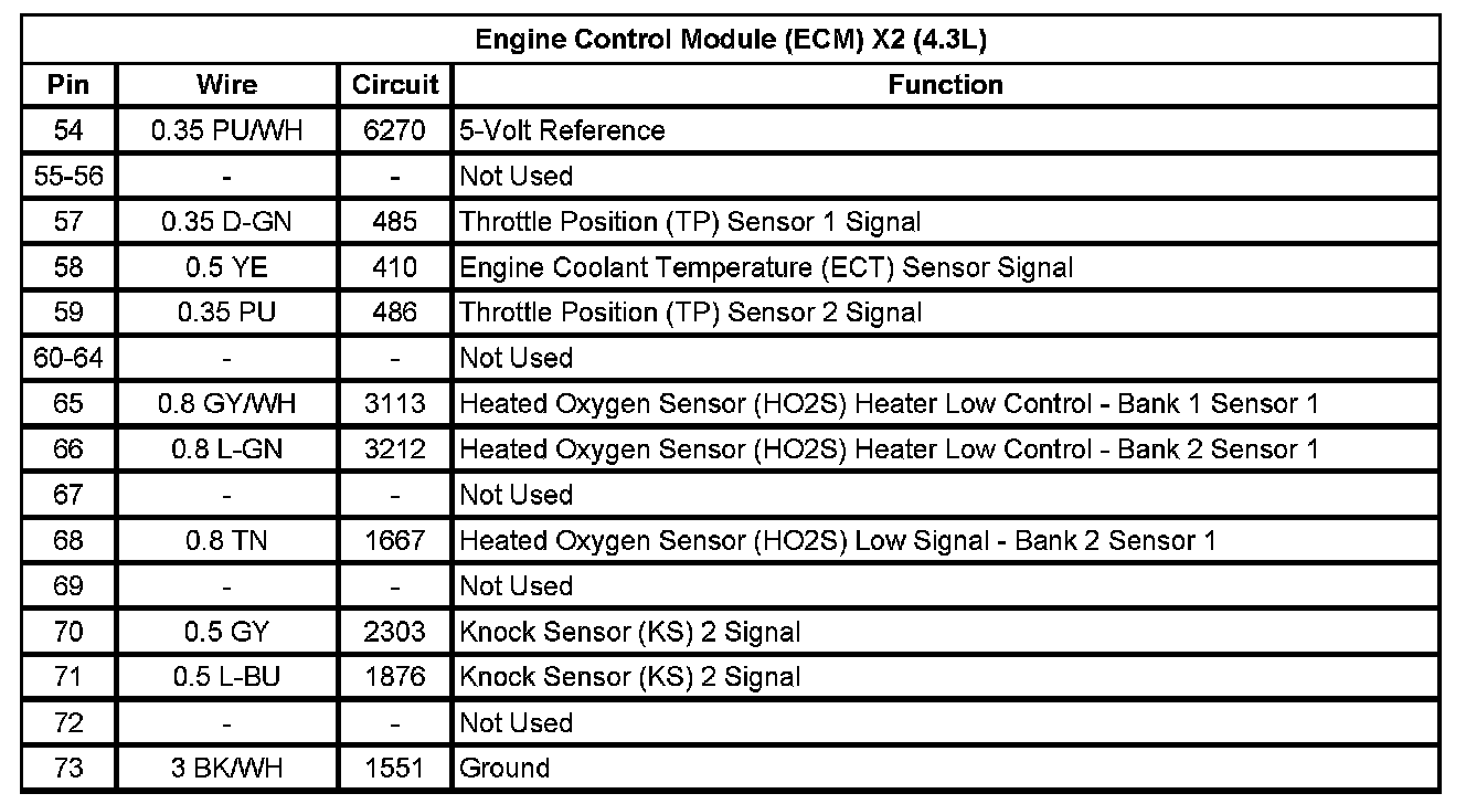 Engine Control Module (ECM) X2 (4.3L) (Pin 54 To 73):
