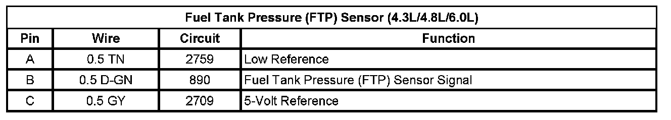 Fuel Tank Pressure (FTP) Sensor (4.3L/4.8L/6.0L)