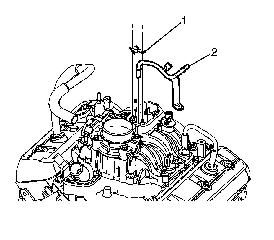 7. Pull straight up on the pipe (2) in order to remove the pipe from the fuel meter body.