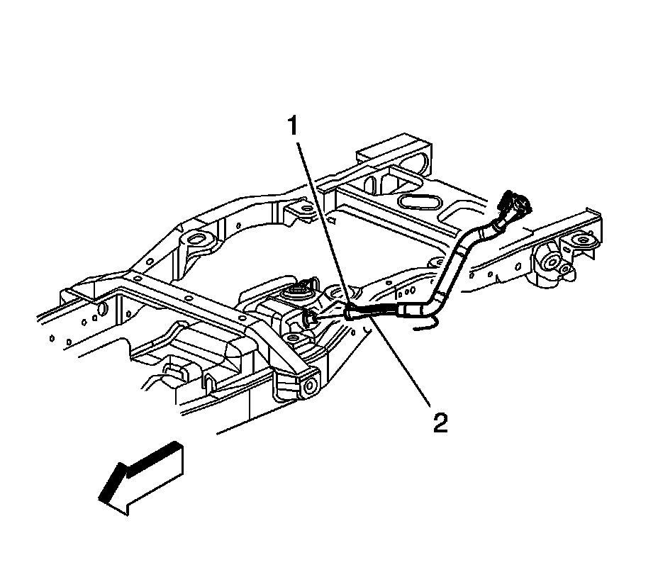 7. Disconnect the chassis fuel feed pipe quick connect fitting (2) from the fuel tank fuel feed pipe.