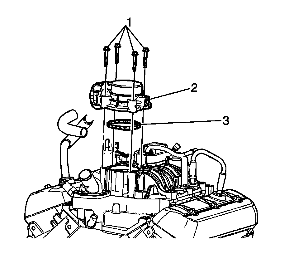 4. Remove the throttle body (2) and gasket (3). Discard the gasket.