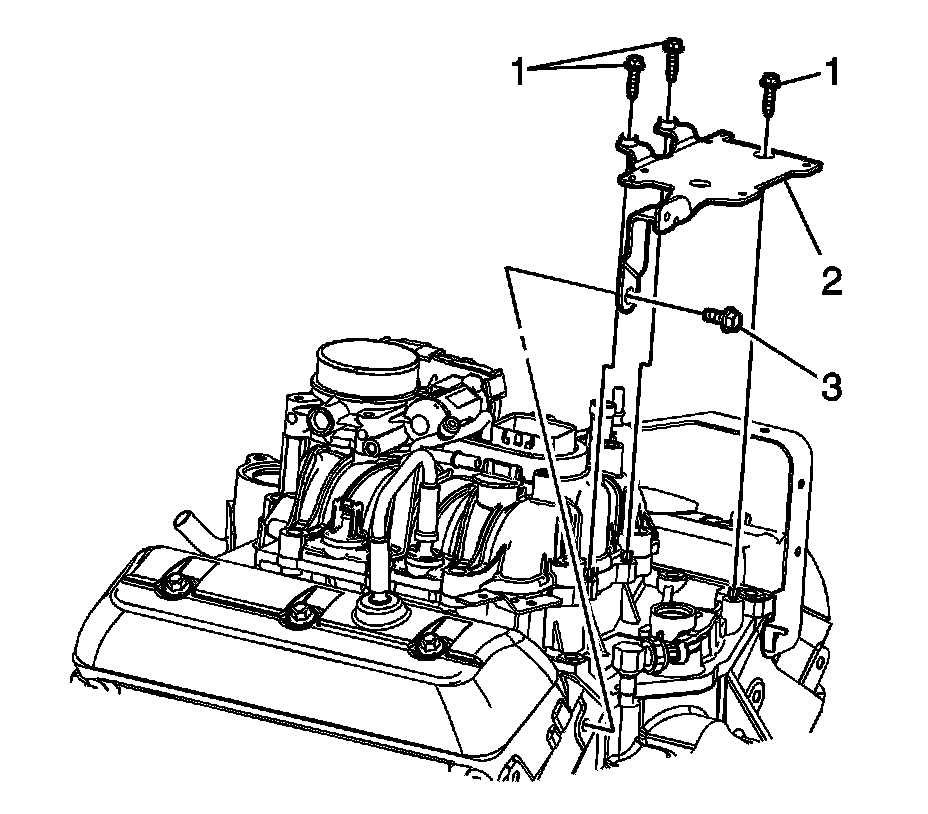 8. If required, remove the lower ignition coil bracket bolt (3).