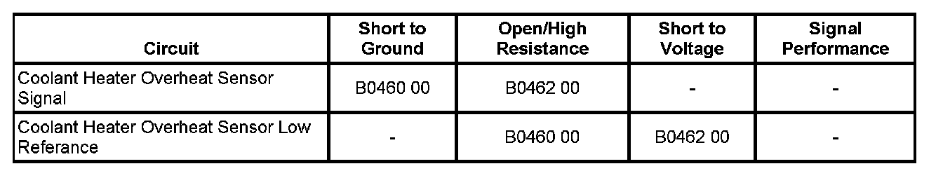 - Coolant Heater Overheat Sensor Circuit Low