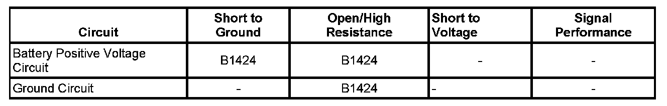 ^ If DTC B1424 is as history refer to Diagnostic Aids.