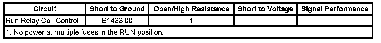 The DTC will set only when the module requests the output and there is a short to ground in the run relay coil control circuit.