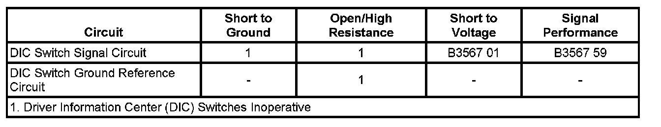 - Driver Information Center (DIC) Select Switch Circuit Short To Battery