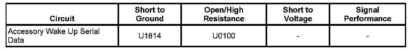 The BCM senses a short to ground on the accessory wake up serial data circuit.