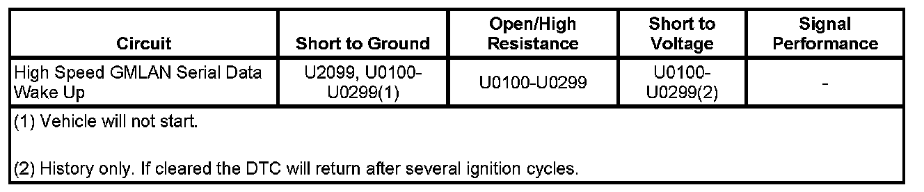 Short to ground will also set multiple history no communication codes for GMLAN high speed modules