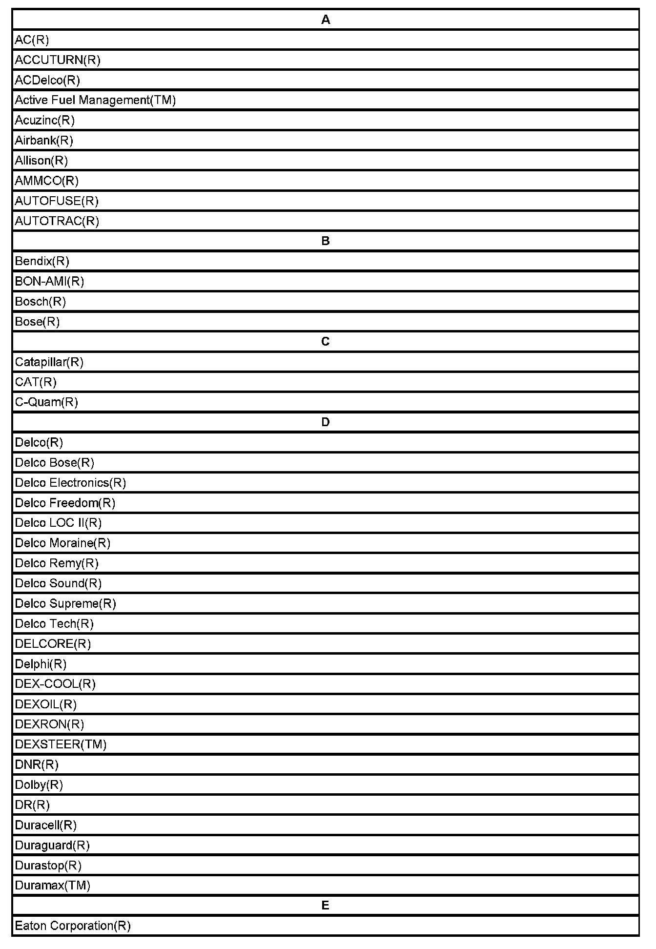 Listed below are Registered Trademarks ((R)) or Non-Registered Trademarks ((TM)) which may appear in this service manual.