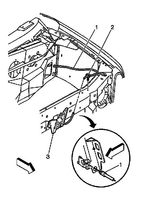 4. Push the cable (1) and the grommet into the cab from the engine compartment.