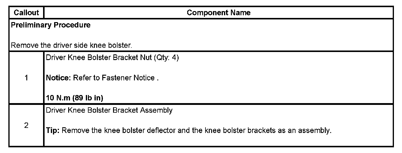 Driver Knee Bolster Bracket Replacement