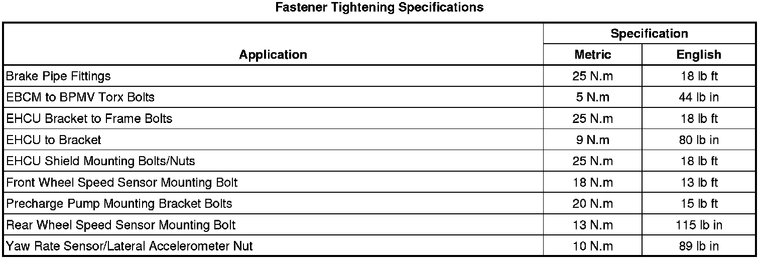 Fastener Tightening Specifications