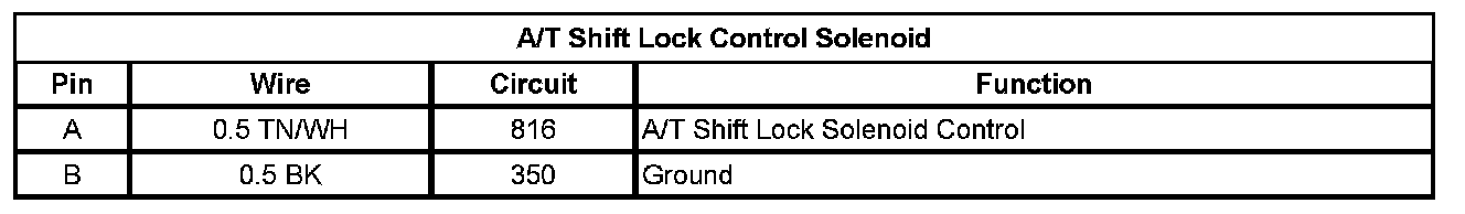 A/T Shift Lock Control Solenoid: