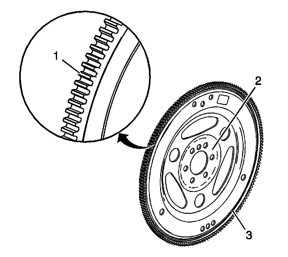 * Welded areas (3) that retain the ring gear onto the flex plate for cracking