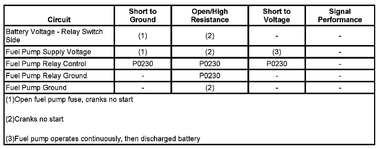 Fuel Pump Electrical Circuit Diagnosis