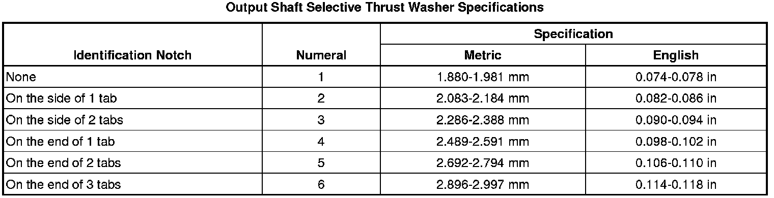 Output Shaft Selective Thrust Washer Specifications