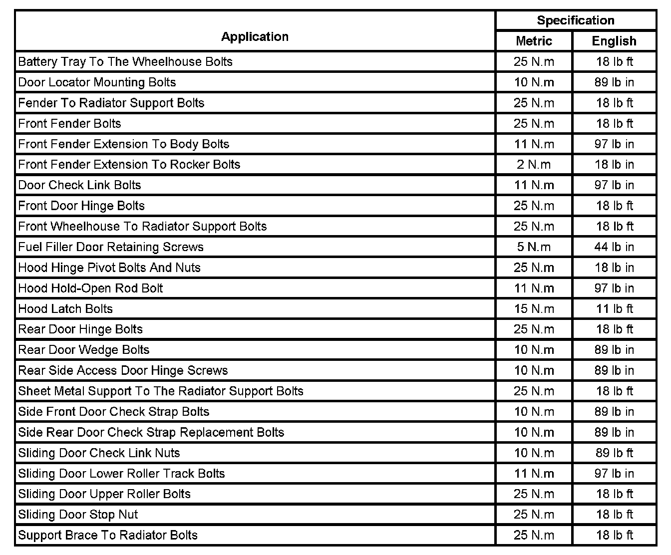 Fastener Tightening Specifications