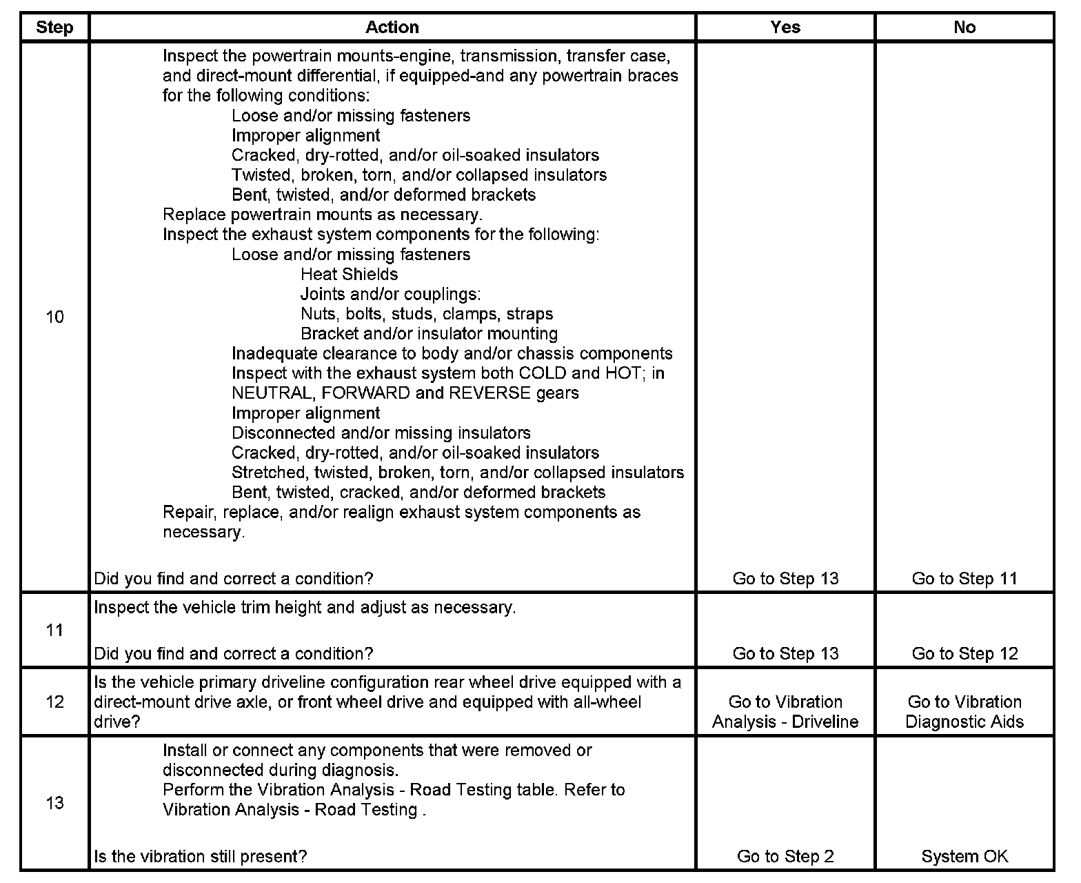 10. Damaged or worn powertrain mounts and/or exhaust mounts may cause a noise or vibration that may be transferred into the passenger compartment.