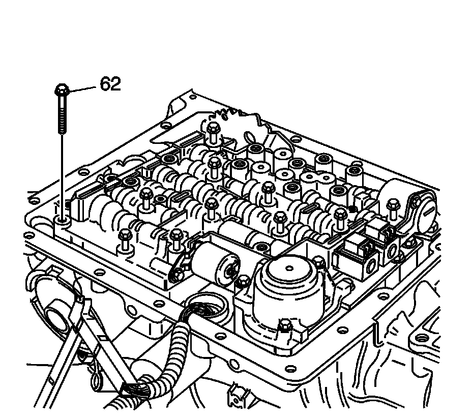 8. Install the valve body bolts (62) that are shown only.